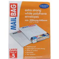 County Stationery Mail Bag Polythene Envelopes x5 White Large 320x440mm (Pack of 10) C262